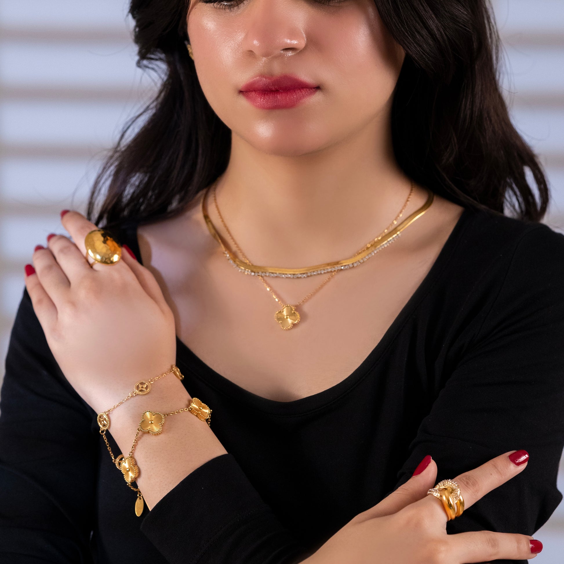 Product Info: Our stainless steel jewelry, meticulously crafted with 18k gold PVD plating for enduring beauty and durability. Designed for comfort and safety, our pieces are waterproof and resistant to tarnishing, ensuring effortless style without compromise. Enjoy timeless elegance and long-lasting quality with minimal maintenance, perfect for those with sensitive skin.